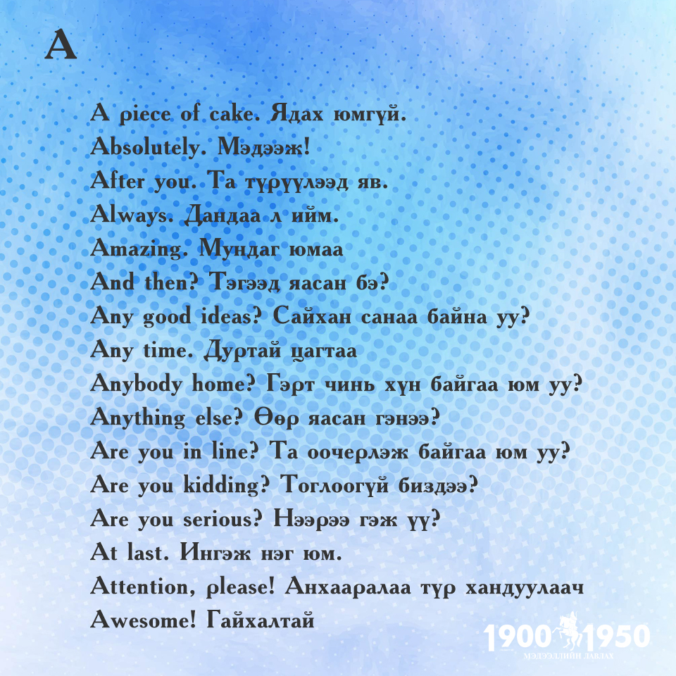 Гадаад хэлний сургалтын төвүүд, мөн гадаад улсын их дээд сургууль болон коллежид хэлний бэлтгэл, бакалавр, магистрын чиглэлээр зуучилдаг газруудын мэдээллийг 1900-1950 мэдээллийн лавлахаас асуугаарай.
